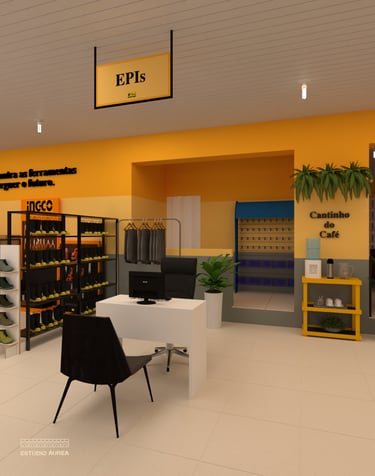 Além do espaço, cuidamos da atmosfera. Indicamos estratégias simples e eficientes para neutralizar odores típicos de materiais, além de fortalecer a sensação de pertencimento com um cantinho do café, criando um gesto de acolhimento que humaniza a experiência de compra. Para completar, a biofilia entrou como apoio ao conforto e à qualidade do ar, com sugestões de plantas de baixa manutenção.