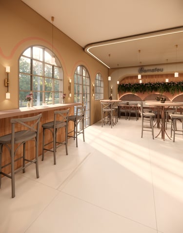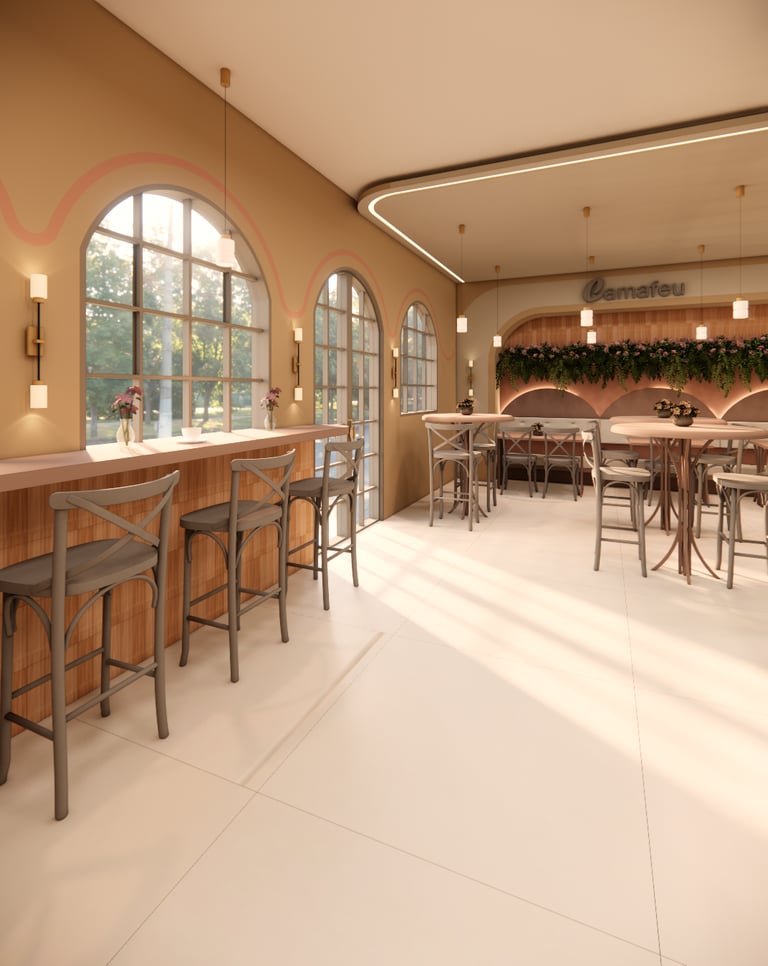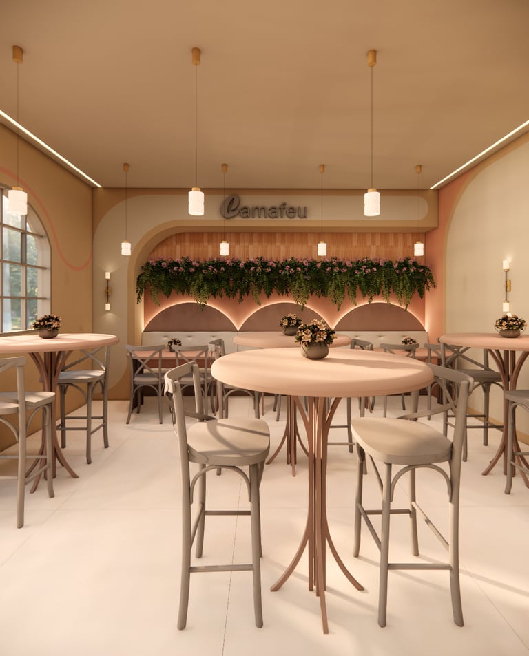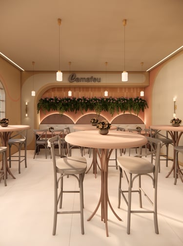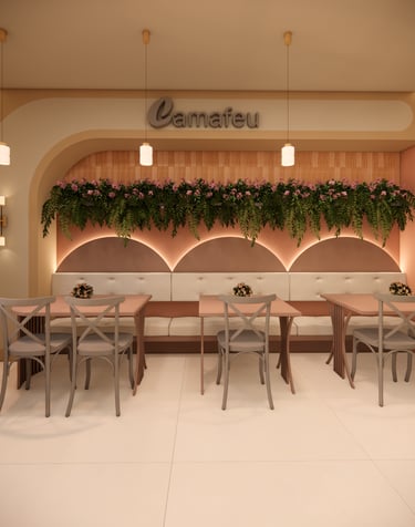 Um espaço pensado para quem valoriza um bom café e a sensação de estar em um abraço. Na Camafeu, a delicadeza está em cada curva, nas luzes suaves, nas texturas que abraçam — um espaço criado para ser lembrado.